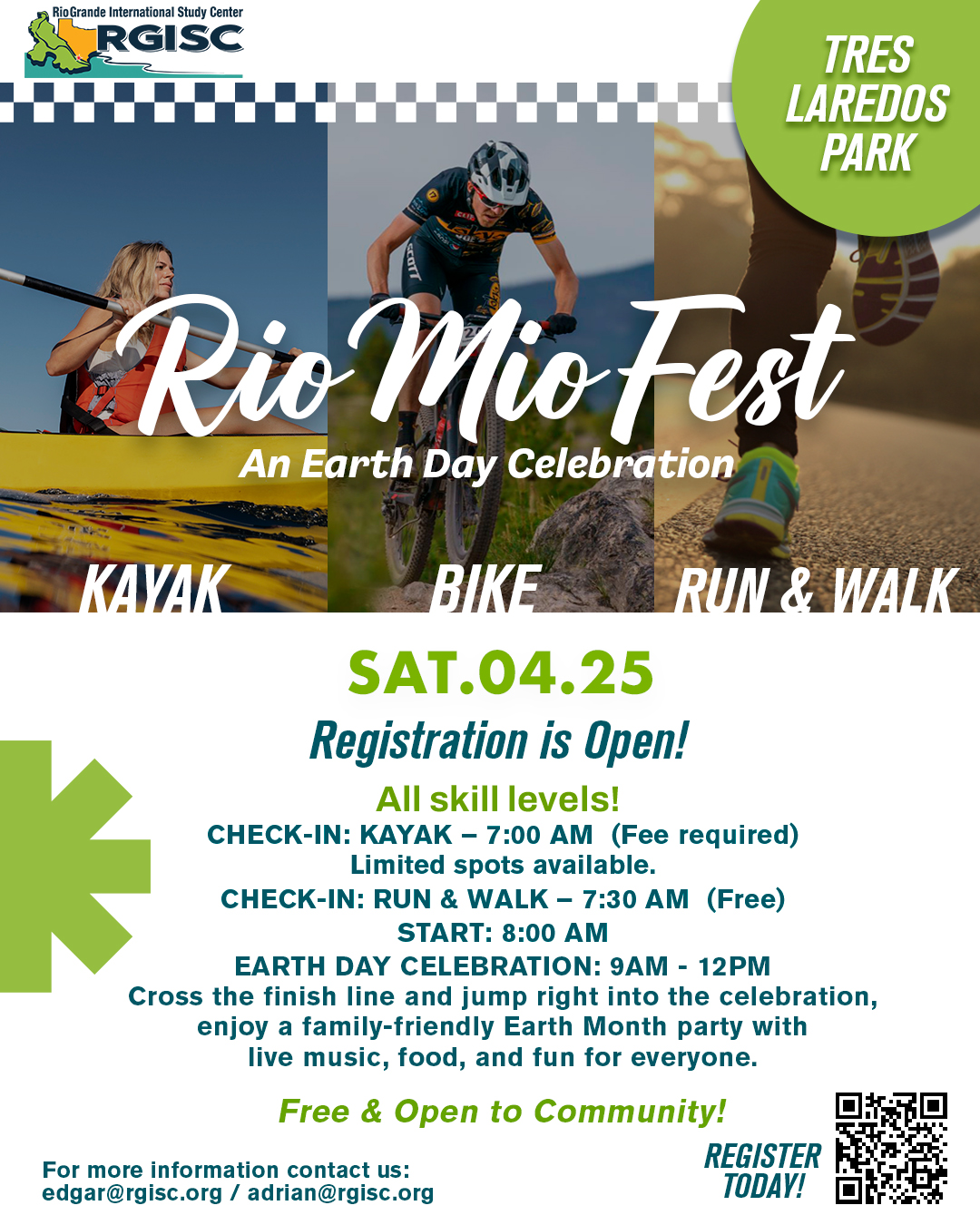 Join us for a day of outdoor adventure and community spirit at Tres Laredos Park! Whether you want to hit the water, the trails, or the pavement, there is something for everyone at this year’s Rio Mio Fest.